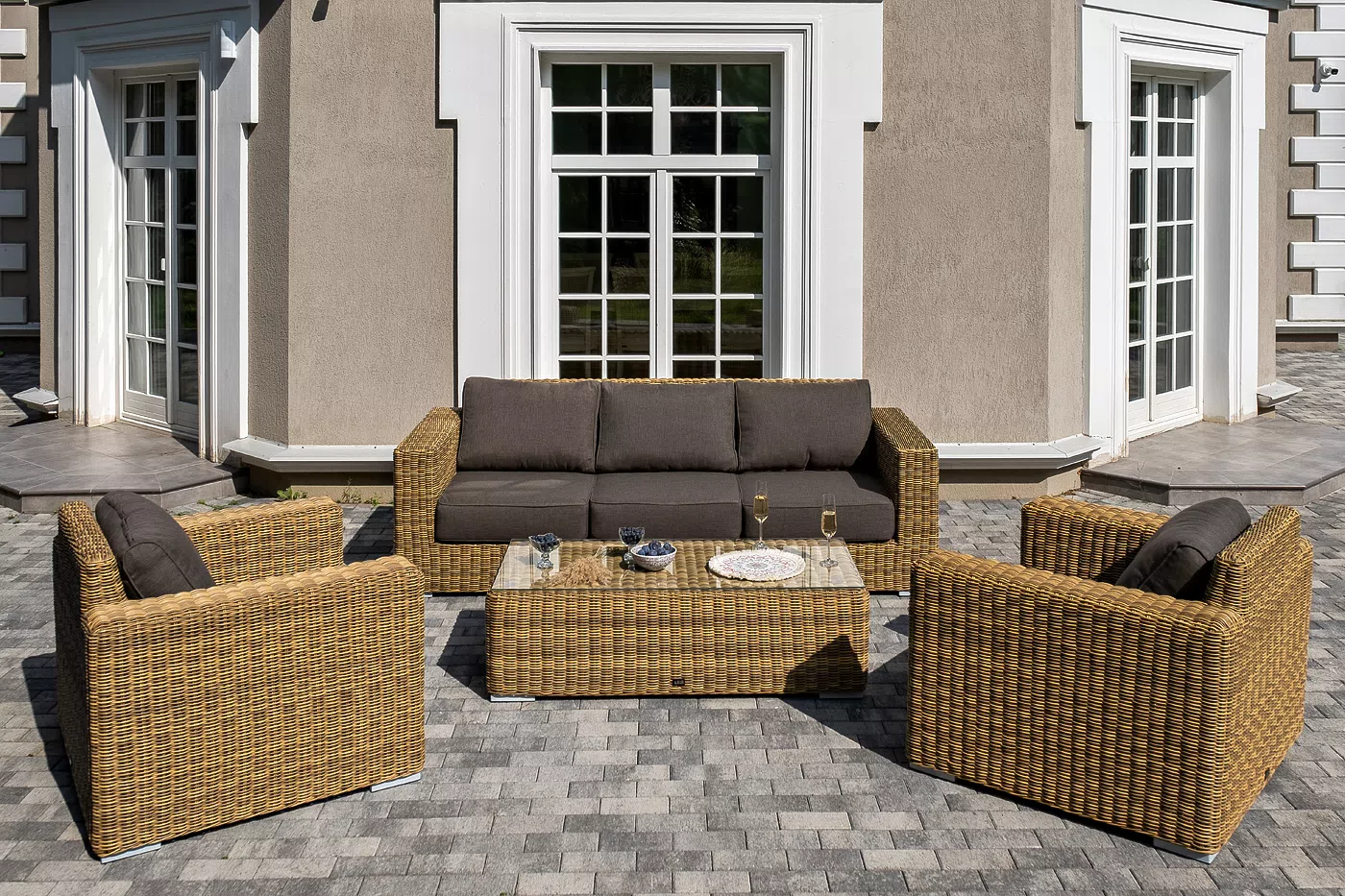 Высококачественный синтетический ротанг визуально неотличим от натурального, но превосходит его по эксплуатационным характеристикам. UV-стабилизированные волокна не выгорают и не становятся хрупкими.