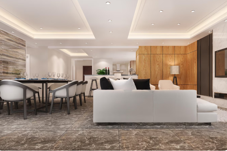 Гибкость дизайна: можно выбрать различные типы освещения — точечные светильники, светодиодные ленты, скрытую подсветку или комбинированные варианты.