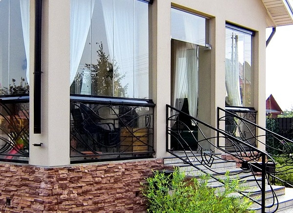 Раздвижные окна двигаются вдоль рамы, что удобно для небольших беседок. Они часто используются в остекленных верандах и террасах.