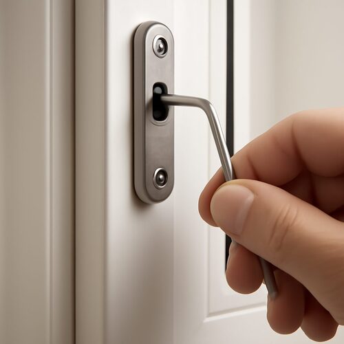- Протяжку крепежных элементов: проверка и затяжка всех винтов, удерживающих фурнитуру и ручку.